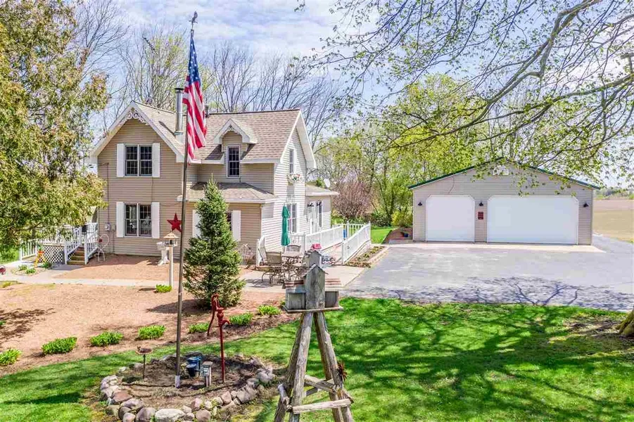 Perfectly situated and charming country home on 2+\- acres! Wrap around porch welcomes you home. Updated kitchen with appliance package and eat-in dining. Living room features a cozy wood-burning stove. Adjacent office is sure to please. First floor bedroom, a large updated full bath and first floor laundry complete the main floor. Upstairs features two additional bedrooms plus a flex room that could be used as a potential 4th bedroom. Storage galore in the detached 3.5 car garage, heated storage building, and another utility building. Updates per seller include: windows, furnace, conventional septic system and more! Don't miss out on this one!