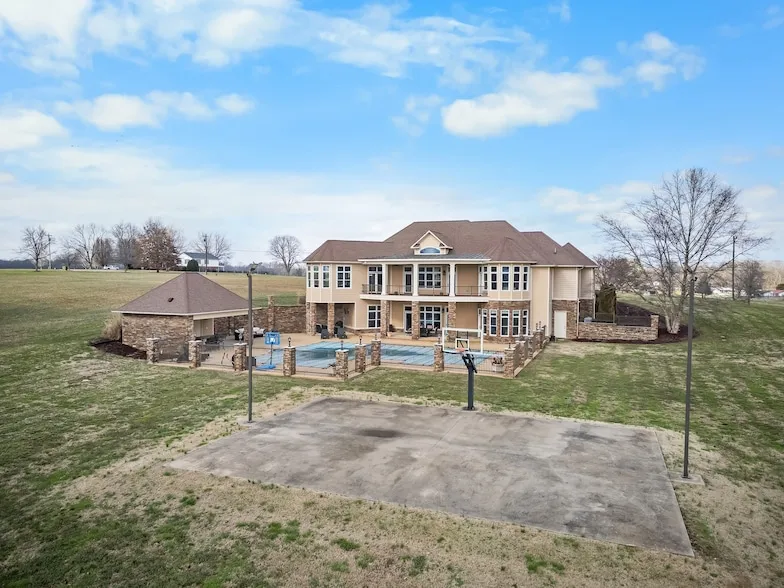 Built to impress and designed to live in, this custom estate on nearly two acres offers the kind of space, craftsmanship, and lifestyle that rarely comes to market. Located in Lawrenceburg, 97 Crawfish Lane blends executive-level finishes with everyday comfort and a backyard designed for unforgettable memories. Natural light pours into the main living area through large windows, while a stone fireplace grounds the space with warmth and intention. The kitchen is equally impressive, featuring granite countertops, stainless steel appliances, and custom cabinetry that combines beauty and utility. The primary suite offers a sense of retreat with coffered ceilings, a sitting area overlooking the backyard, and a custom-organized closet built for daily ease. Downstairs, the finished walkout basement opens up endless possibilities, whether it's movie nights, golf sim practice, or long-term guests, with its second kitchen and direct outdoor access. Step outside and you'll see how the property comes to life. A covered outdoor kitchen, in-ground pool, and half basketball court create an ideal setup for relaxing, hosting, and making the most of Tennessee's seasons. Mature trees and open lawn add privacy without demanding upkeep, and the three-car garage handles storage with room to spare. Located minutes from the shops, restaurants, and charm of downtown Lawrenceburg, with David Crockett State Park close by and Nashville just under two hours away, this home offers a rare combination of space, style, and setting. If you've been searching for a home that balances thoughtful design with real livability, 97 Crawfish Lane delivers.