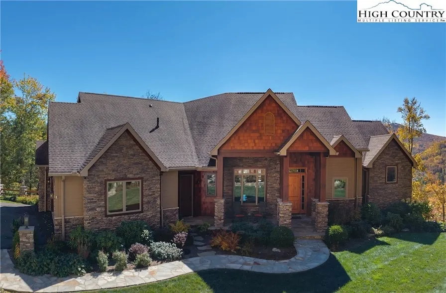 This beautiful home was built by a custom home builder as his personal residence prior to being sold to the current owners. Perched on one of the highest and largest lots in The Farm at Banner Elk, this property offers sweeping views at nearly 4000 feet elevation. Enjoy in town convenience while still feeling completely secluded in your mountain escape. The exterior showcases maintenance free HardiePlank siding paired with stone and cedar shakes. Top of the line Pella Architectural Low E insulated windows and doors, ensuring both durability and energy efficiency. Inside, the main level spans over 3000 square feet and offers multiple gathering areas including an expansive dining room, a comfortable den, a breakfast nook, and a spacious living room. Multiple fireplaces throughout the main level create a warm and inviting atmosphere, while the open floor plan allows each space to flow seaml...