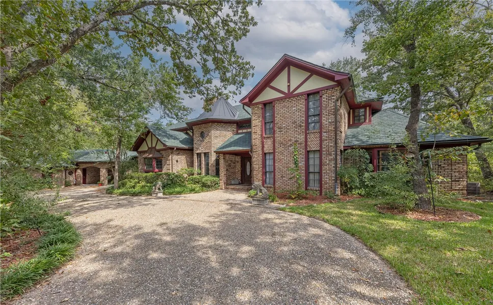 This custom Tudor Revival brick home is just outside the city limits fondly referred to as the Castle ofHarvey Hillsides. A renaissance of color, style, and texture, unique wallpaper and window treatmentsdesigned by Neiman Marcus throughout. Blended antique and modern design creates timeless andcontemporary spaces. All door hardware is forged Baldwin lifetime polished brass, as well as brassand crystal bathroom hardware. Luxury high-end kitchen features a double-sided fireplace and themuch sought after Taj Mahal quartzite countertops and kitchen aid appliances. Custom beamedsunken living room retreat with a double-sided fireplace and built-ins overlooking the pool oasisperfect for entertaining. Enormous upstairs bonus room with a wet bar also having Taj Mahalquartzite, wine fridge, and adjacent move room, music room (currently used as fourth bedroom), andcovered balcony complete this entertainment haven. Two fully functional bedroom suites upstairsprovide spacious room for a growing family. Primary bedroom suite downstairs provides resort-likeamenities including rainforest granite, double-sink, whirlpool tub, custom his/hers closet, sittingroom, and enclosed porch with swing to enjoy the view of the trails and covered bridge. Copperroofed octagon turret dining room has black granite floors with four Tudor stained-glass windows.Custom built cupola is interior lit with copper roof and identical stained-glass panels. Too manyfeatures to list!