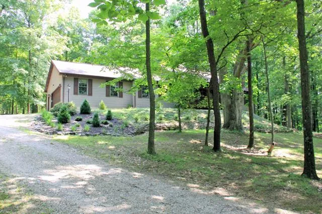 *SOLD - November 2014* Long looks here quickly change to longing ones...this upscale and easy-living plan and location combine for one wonderful lifestyle opportunity! Nestled on the north end of Hide-A-Way Hills, gated resort community gateway to the famous Hocking Hills vacation region..whether you're looking for a full-time home or weekend getaway, there's lots to love here. Start with 2.5 wooded lots & just under 2 acres of neatly-groomed grounds, easily accessed via lower level walkout, rear sun room, covered front porch, or garage service door. There's also full perimeter lighting, along with minimal-maintenance exterior, and the property backs to large acreage parcels. Inside are spacious family & dining rooms flowing around a central stone fireplace. To the sides are a master suite plus 2 additional bedrooms & bath. The kitchen flows thru a bayed eat-in to a laundry & half bath, & lower level is mostly finished, including a kitchenette, along w/ large storage & utility space. 2 full & 2 half baths, 2! Hide-A-Way Hills members enjoy boating & fishing lakes, golf & tennis, ATV trails & stables, playground & park areas, lodge & restaurant w/craft brewery, airstrip & storage, 24/7 security & gated access....ask for a community tour!