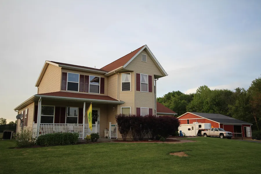 1.89 Acres, 40x44 Pole Barn, 4 Bedrooms and 3 Baths! Beautiful vinyl sided 2-story country home featuring a custom kitchen with oak cabinetry and large pantry. Brazilian teak wood flooring in the living room and formal dining room! You'll love the master suite with sitting room and private bath. Rec room and office area. Central vacuum system, hook-up for generator. Sliding glass door leads to the deck and fenced-in back yard with deluxe playhouse. Excellent set-up for horses with stables and electrified pasture fencing. Pole barn is large enough for motor home. Conveniently located approximately half way between Kalamazoo and Battle Creek. Enjoy this fine home, pole barn and quiet country setting today!