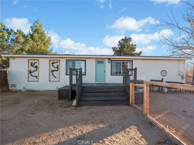 BEAUTIFUL VIEWS!! Rare find...Flat usable lot on PAVED Wilson Ranch Rd. The living space is large, open and inviting with a large center island in the gourmet kitchen, GREAT FOR FAMILY GATHERINGS! Recently installed wood burning stove for creating that warm, cozy feel on cold winter nights. This home has a split floor plan with primary suite on one side of the house and the remaining 2 bedrooms and second bath on the other side of the house offering privacy for both. There are 3 mini-split units installed that serve for both cooling in the summer and heating in the winter. With marble quartz countertops throughout and subway tile backsplash in the kitchen giving it a modern feel. This property boasts 2 acres of fully fenced, usable land great for your animals and toys. Bring your toys and animals and make this your desert escape. Come take a look!! Make an offer!