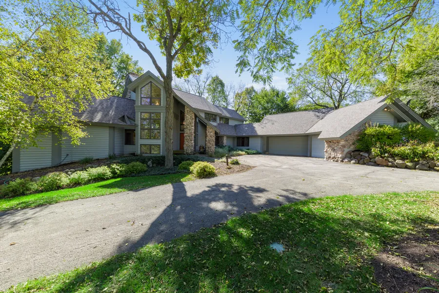 Work remotely or just escape to quality custom home that overlooks Yellow Creek in Freeport, located under 2 hours NW of Chicago and about 30 minutes W of Rockford. Home is sited to take advantage of the beautiful outdoors in all seasons with expansive custom windows, many that are floor to ceiling, that take in the beauty of the 1.89 acre wooded site. Wisconsin fieldstone was used accent the beautiful cedar exterior and to frame the wood-burning fireplace in the family room. The custom glass display case off the foyer, volume ceilings and windows let in lots of natural light for this 4 BR, 4 1/2 bath home. The primary bedroom suite enjoys its own balcony, Jacuzzi and spacious closets. Two en-suite bedrooms are located on the 2nd floor along with a sitting room that overlooks the family room. The floorplan is flexible and the open layout of the family room/ living room/kitchen combine...