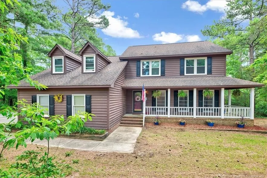 Price Improvement! Surround yourself with the privacy you deserve on 1.9 acres! This 3 BR home includes a bonus room and sunroom (not inc. in sq ft). Only minutes from stores, restaurants, and 25 mins from Fayetteville/Fort Liberty. Walk out of your living room through the new sliding glass door onto a large two-tier deck around the above-ground pool or relax on the fully covered raised lanai. The home features a whole-house water filtration system/softener, 2022. New windows in every upstairs room-2019, a new roof-2018, upstairs HVAC-2022, and downstairs HVAC-2014, with all new duct work-2024. A formal dining room sits off the granite countertop kitchen and offers views of the large front porch and front yard. It's time to escape the city and find your peace in this quiet community!