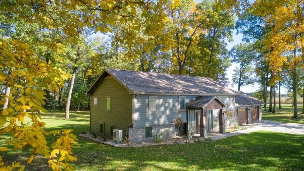OPEN HOUSE, Sunday, November 21, 1-3pm. Nestled on a rural 2 ACRE wooded lot, this fully CUSTOM renovated bi level home (2021), reflects so much luxury, style and quality! Welcome to this home of over 2700 of newly finished living space on two levels, 3 bedrooms, 3 FULL baths, grand family room, open kitchen, dining and living space, master suite with exquisite master bath, featuring walk-in ceramic shower, as well as, organized walk-in closet to fill with your heart's desire! HOME WARRANTY in place. For those that will not settle for less than the exceptional handcrafted, remarkable durability and attention to extraordinary detail. All aspects of the home and attached 24x40 garage have been touched from the NEW water supply lines the 16 on center#1 southern yellow pine MSR beams! What a back-drop of majestic mature Hickory and other hardwoods as you pull onto the massive new concrete drive and take in the completely new exterior of top-of-the line HP2, quality-edge steel siding, Anderson efficient windows, attractive Craftsman style front entry with contrasting hues, colorful landscaping, dimensional shingles and more! Step inside to 2021 creative design with 12+foot stack-stone wall of shades of gray, complimented by open rich solid wood tread staircase completed by metal art black handrail. The motif is expanded to the well-appointed kitchen with the sought after gray cabinetry, subway white tiling, black granite counter top and accents. This spacious gathering space of kitchen, dining and living spans the width of the home with beautiful views of the front and back lawns of this country acreage. Create many wonderful memories in this heart of the home. During the warmer days expand those moments on the custom-created deck with same theme of natural wood of exceptional finish and unique steel railing. Let's venture down the short hall to the 15x16 master haven. You will find the shiplap wall of individually cut, finished with warm stains and placed in perfect harmony on the west wall! You have made you list and you are checking it twice as this newly renovated home checks the boxes while you continue to the two additional bedrooms with large windows and closets, white chair rail and luxury carpeting. Don't miss all of the ceramic bathroom finishes, pocket doors, LED and accent lighting, storage cubbies, laundry with front loading washer and dryer, utility sink and proven manufacturers throughout. Such an opportunity!