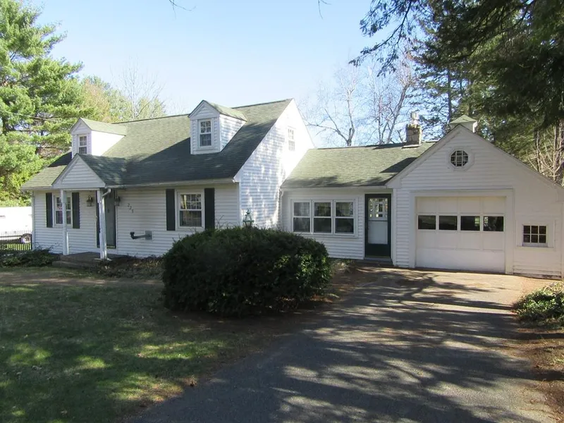 Fantastic 5 bedroom Cape style home with 2 full baths with a private suite that has its own full bathroom and 2 bedrooms with a kitchenette area and large living room with hardwood floors that leads to a deck with retractable awning. Hardwood floors through most of the first floor with a large stone fireplace in den. Pellet stove in dining room that leads to a large living room. The property comes with almost 2 acres of land and a very large 40X60 foot 2 story barn that would be great for the car storage or animals. The lot is big enough to have livestock check with town for details and restrictions . 2 driveways for plenty of parking. Enjoy the country living with all the town amenities.