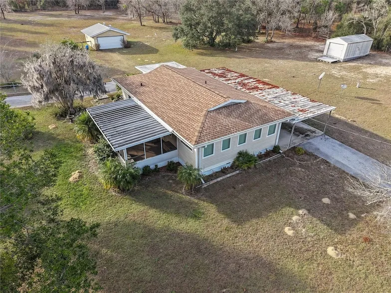 Welcome to this charming 2-bedroom, 2-bathroom home nestled on a sprawling 1.91-acre corner lot in the heart of Rainbow Acres; Dunnellon, Marion County. Boasting an array of recent upgrades, this residence offers modern comforts while retaining its countryside allure. Key updates include a new AC and electric panel in 2016, a complete roof and gutter system in 2017, all windows in 2018, and fresh doors in 2019. The property features two gated entrances, each on a separate road, enhancing privacy and accessibility. Positioned on a desirable corner lot with paved road access, the home faces south and spans a generous 200 x 415 ft. Enjoy the convenience of a detached garage, a nearly attached carport (note: the carport roof requires some attention), and some newly installed fencing in 2024. Relax on the screened 12x18 front porch, offering a serene spot to unwind. Don t miss this rare opportunity to own a piece of tranquility in Marion County, perfectly zoned R1 for residential use.