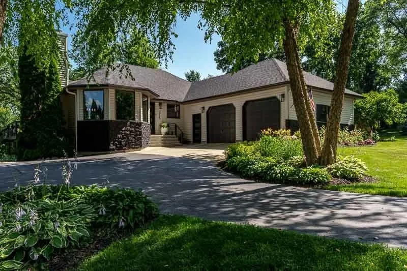 BACK ON THE MARKET!!!! The pictures tell the true story of luxury living in this exquisite, fully remodeled home nestled on 1.9 beautifully landscaped acres at the end of a private driveway. Soaked in natural light, nearly every room offers a stunning view through abundant windows, including brand new Pella windows in the primary suite. The gourmet kitchen features granite countertops, oak cabinets, a wine fridge, and all appliances included. New oak flooring and custom stair railings add warmth and elegance throughout. The dedicated office is nothing short of impressive. Enjoy outdoor living on the gorgeous deck or the peaceful patio area. The heated garage, new 2023 roof, secondary 1 car garage and private setting complete this exceptional home. Seller providing an Ultimate Home Warranty with UHP.