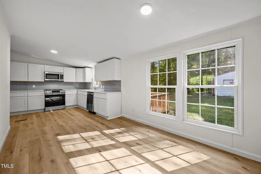 This stunningly renovated 3-bedroom, 2-bath home perfectly blends modern style with serene privacy on nearly 2 acres in the peaceful Willow Creek community of Wake Forest. Perched on a hill with elevated views, this property offers a true private retreat, complete with a spacious 30x20 detached garage ideal for a workshop, hobbies, or extra storage. New HVAC system Every detail has been thoughtfully updated: new roof, interior paint, kitchen cabinets, countertops, backsplash, appliances, vanities, plumbing fixtures, 20 mil LVP flooring, light fixtures, and a brand-new front deck. Move in and enjoy a stylish, turn-key home where modern updates meet country calm, all just minutes from the heart of Wake Forest.