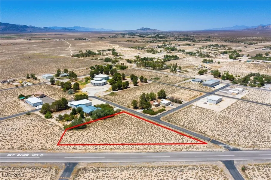 Airpark community lot Approx. 1.93 acres in Sky Ranch Estates II (3L2) with level terrain and broad building envelope Community water system in area and underground power reported nearby (buyer to verify) Ideal for custom residence or hangar-home concept in an aviation-oriented neighborhood Desert and mountain views; quiet rural setting with convenient access to local services; ~45-60 minutes to Las Vegas via I-15/Jean Access to outdoor recreation on nearby BLM lands. Nearby: Community Center (~0.8 mi), Library (~1.2 mi), Park (~1.3 mi), General Store (~1.1 mi).
