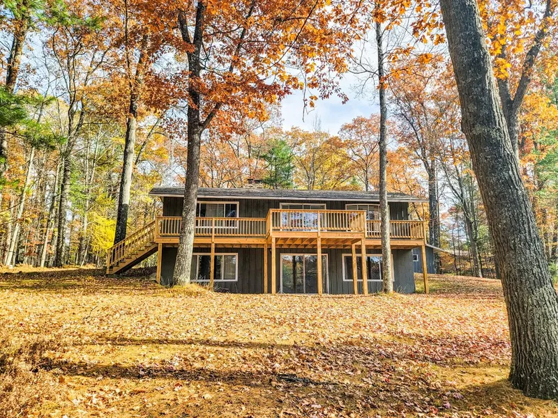 This custom built 3BR 2BA home sits on an incredible almost 2-acre lot with western lake views and 200' of perfect level sand frontage on Towanda Lake. The home has a desirable layout with a mostly finished walk-out lower level, whole house lakeside deck (new in 2021), wood burning fireplace, open concept living/kitchen area, and two+ car detached garage. The lot is extremely private with towering trees in a prime location just minutes to all amenities. The home has been loved and well-maintained by the sole owners since 1970 and is waiting for a new owner to take over the legacy.