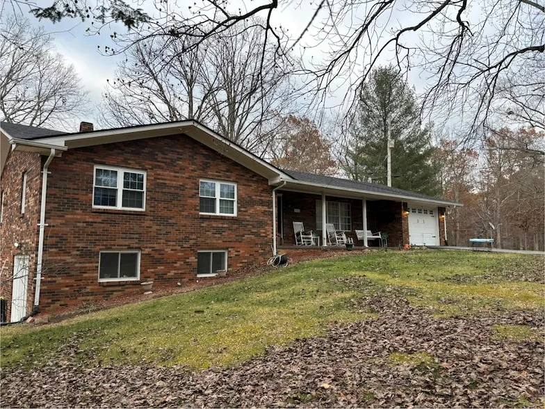 Nestled on a sprawling 1.94 acres with several mature trees, this beautifully remodeled 4-bedroom, 3-bath home offers an exceptional blend of modern elegance and rustic charm. The kitchen boasts granite countertops and an abundance of cabinets. Beautiful hardwood flooring in the upstairs common areas, tile that looks like hardwood in the bathrooms & basement, and luxurious carpet in the bedrooms. The partially finished walkout basement offers additional living area that includes a kitchenette, rec/living room, a bathroom, a laundry room, and another room that could be used as a bedroom or office. There are two washer/dryer hook ups with one being in the garage and another on the lower level. Picture yourself sipping your morning coffee or watching your favorite sports on the expansive screened in patio. The vast outdoor area is perfect for summer barbecues, gardening, or sim...