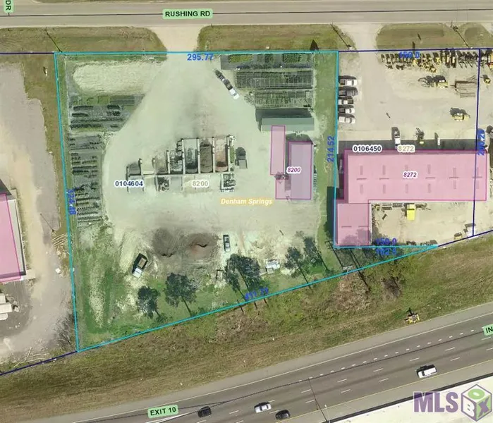 Just under 2 acre fenced lot with 295 ft of frontage on Rushing Rd. and 411 ft of visibility exposure on Interstate 12. Property is clear and