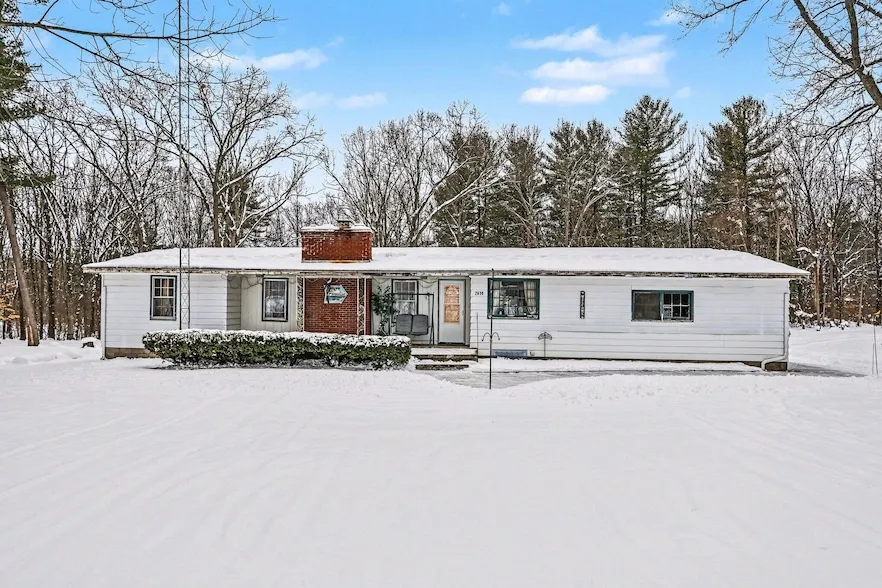 Tucked away approximately 300' off the road and set on nearly 2 beautifully wooded acres, this property offers the perfect blend of privacy and potential. Surrounded by mature trees and peaceful scenery, you'll love the quiet setting while still enjoying plenty of space to make it your own. Inside, this 3-bedroom, 2 full bath home features gleaming hardwood floors, neutral d cor ready for your personal touch, and a cozy wood-burning fireplace that creates a warm and inviting atmosphere. Natural light flows throughout, enhancing the home's comfortable layout. A huge pole barn adds incredible value and versatility ideal for storage, hobbies, workshop space, or all your outdoor toys. Note: The home needs some cosmetic work on the exterior and seller is unable to complete. seller prefers to sell the home 'AS IS' Loaded with opportunity and charm, this is your chance to create something truly special. Come make this home yours today!