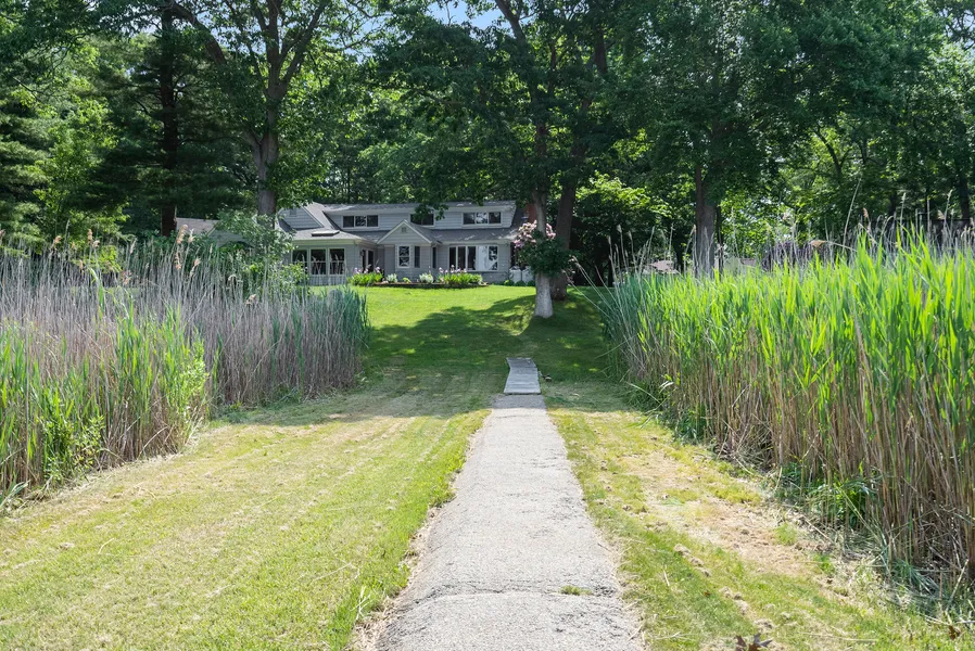 A private driveway leads to a unique, waterfront setting offering solitude and simply stunning sunsets. The property contains a four bedroom Cape style home and guest house on nearly two acres of land with a wide, western facing waterfront on Hundred Acre Cove. A boardwalk, facing a private boat mooring, between the sea grass and reeds, is your entry way to life on the water. The gathering area of this home the kitchen and great room boasts beautiful hardwood floors and a virtual wall of windows looking over the Cove. Stainless appliances, newer cabinets and a central island offer efficiency and plenty of storage. A new owner has the opportunity to put the finishing touches on this area. A large living room with fireplace also offers a commanding view of the front brick patio and water. A master bedroom with westerly water views and new master bath along with another large bedroom with ...