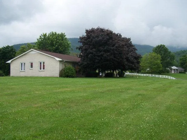 Sprawling brick rancher tucked into heart of Elk Creek, views Ntl Forest & tree farms on almost 2 acres. Wonderful floor plan, large open country kitchen has working wood burning fireplace hearth w/double doors to covered deck bringing outdoors in. Kitchen also flows into adjoining sunroom w/attached great room, open floor plan LR/DR combo. Home loaded w/surprises original seller left no stone unturned.. mastersuite includes laundry closet + walk-in closet w/built-ins & its own full tub/shower bath w/phone+personal urinal, central vacuum, wired for generator, bay window in LR, double attached carport, storage workshop. Concrete full enormous basement bright, clean, dry, w/power, water, workshop, storage galore & can be finished to double size of home. Root Cellar + a 30x32 barn plus a garden variety of berries, fruit trees, perennials & plenty of space to grow it all your own. RV/Horses welcome. Close to Ntl Forest, New River, Horse Trails. A lot of home & land priced right.