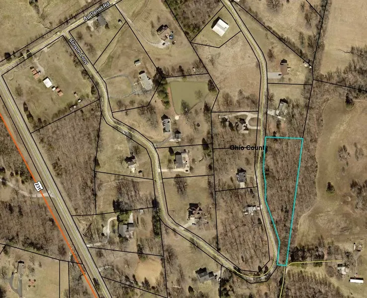 Completely wooded building lot in the Pennyrile Ranchettes Subdivision. In Ohio County, just 6.5 miles past the Ohio Co/Daviess Co line and includes 1.9 acres. There are deed restrictions to protect your investment. Take 231 to AG Danniels Rd, then take second right onto Stinson Loop and you will see it on left. This is a long irregular lot that is roughly 180 feet deep at its widest point.