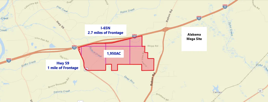 Property is located adjacent to Alabama Mega Site and the new 2.5B Novelis Aluminum plant.