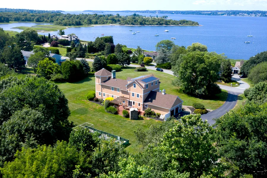 Cool breezes, water views, and breathtaking sunsets are just the beginning to this custom-built shingle-style "smart home" residence. Fully renovated in 2006, sited on two acres of sprawling lawn overlooking the Sakonnet Passage, the home offers four bedrooms, three-and-a-half baths, home gym space, and two home offices. The mahogany porch has privacy with mature perennial gardens. Step through the front door to open concept living with a casual touch. Deeded mooring and water access for kayaking and swimming. One hour drive to Boston and a 30 minute easy commute to Providence and Newport make this a convenient location!