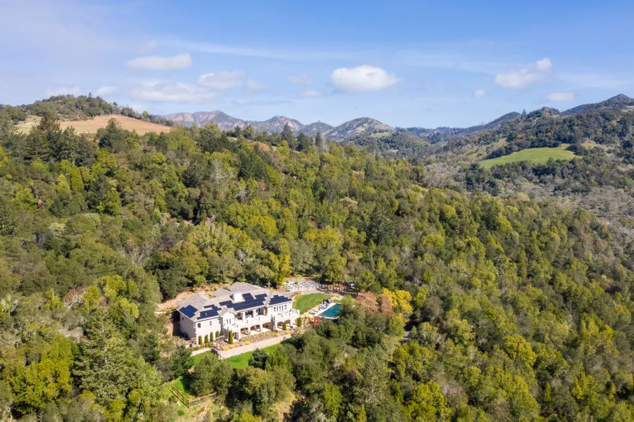 Enjoy spectacular panoramic views of the San Francisco skyline in the distance from this custom-built four bedroom and three and one half bath single level home just about two miles from the Sonoma Plaza. Located on approximately two acres on coveted Gehricke Road in Eastside Sonoma, the homes ambiance of spaciousness and light created by its open floor plan, soaring ceilings and walls of glass doors inspire enjoyment of the Wine Countrys acclaimed indoor-outdoor lifestyle of relaxed sophistication and resort-style living. Luxurious and elegantly appointed, youre drawn into the dramatic entry of this grand estate by a one-of-a-kind custom designed fountain. This stylish retreat features a most spacious master suite with his-her walk-in closets and features an enchanting birds eye view from the corner picture window over the master tub. Three additional bedrooms, one en-suite and two sharing a Jack & Jill bath, complete the bedroom wing. A fully appointed chefs kitchen and breakfast area flows seamlessly into the great room with access to the outdoor dining area. The stylish and well-appointed living room with wall-to-wall French doors accesses the covered patio featuring a big screen media area and outdoor fireplace. The formal dining area and wet bar are perfect for entertaining in style. The home office/study, located off the grand entryway, has its own exterior entrance. Sweeping views with expansive manicured outdoor space is ideal for entertaining. The expansive lawn and landscaping features an English rose garden lush with over 125 rose bushes. Throughout the property, youll find specialty abundantly-producing fruit trees and terraced raised vegetable gardens. A hobby vineyard awaits your green touch. An incredibly inviting 24X50 foot EcoSmarte pool designed and installed in May of 2020, shares a 10X10 jetted spa with seating for eight. This gated and fully fenced estate affords the ultimate in privacy featuring a state-of-the-art security system. A four-car garage provides ample room for parking and storage. The lower level showcases the potential additional 4,400 square feet suitable for additional guest suites, movie theater and wine cellar. This one-of-a-kind estate is turnkey and move-in ready. Resort living as its best.