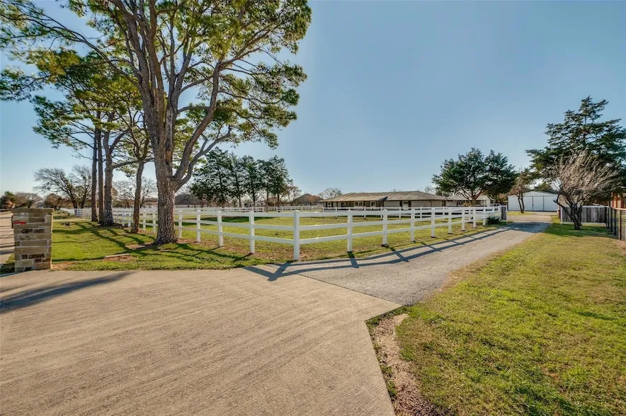 Breathtaking views from this fabulous country setting. Fantastic location. 1 mile from Lake Lewisville,shopping and restaurants. 2 separate pastures.Residence includes 3 bedrooms,2 baths and study. The kitchen boasts granite countertops,travertine,tile and stainless and black appliances. 4 stall Shedrow style barn featuring a tack room and covered runs. 1500 square foot shop. Sparkling inground pool. Covered patio,great for hosting your next outdoor barbecue.