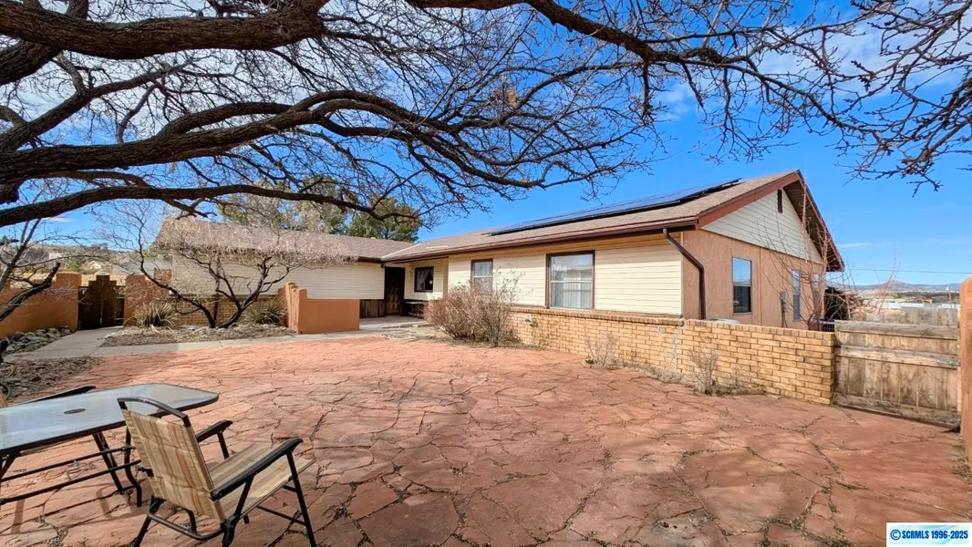 Large 3 bedroom, 2 bath home that sits on two adjacent lots measuring at 2 acres total. The house features a split floor plan, country kitchen with a breakfast bar that looks into the large family/dining room with a wood burning F/P, another large living room on the other side and the home is on Solar! There is also a cozy sunroom/den off the family room with a pellet stove which could also be used as an office. The primary bedroom is spacious with two large closets and a full bath with a walk-in shower and a separate tub. There is plenty of room for an RV and your toys with a large storage shed attached to the 2 car garage. Apricot, peach and apple trees in the front yard and the private courtyard. Enjoy the end of the road privacy with spectacular long range views and minutes from the golf course. Schedule your showing today!