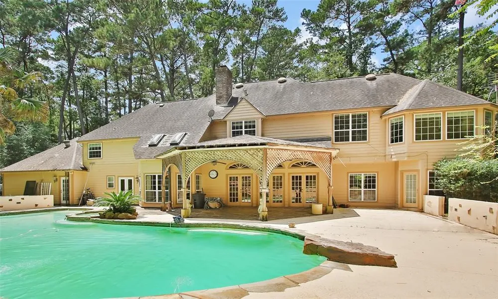 Incredible opportunity to own privtae 2 acres in the Waldenwood Estates Community outside Tomball Country Club & minutes to 99! At the end of a cul-de-sac & nestled among the trees, this stately custom home is thoughtfully laid out. Enter the 2 story foyer & your eyes are immediately drawn to the resort style pool w/ waterfall & slide. Spacious living room is adorned by coffered ceiling, crown molding, gas fireplace, & built in cabinets. Large island kitchen boasts subzero fridge, 2 pantry areas, granite counters & is open to the breakfast room w/ soaring ceilings & an abundance of natural light. 1st floor bedroom w/ walk in closet & full bathroom located near the dedicated study in the North wing of the home. Oversized master bedroom boasts additional room perfect for a nursery or secondary office, master bath w/ 2 separate vanity areas & 2 walk in closets, large shower & separate jette...
