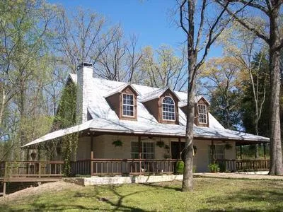 Too cute for Texas? You bet your boots. This Texas Heritage style architecture really sets this home apart. Nestled back in the trees and situated on almost two acres this home allows you to have plenty of elbow room and privacy while being only minutes from World Famous Lake Fork. This home is over 1840 sq feet heat/cool and more than 2750 sq feet under roof. Notice the aggregate wash walkway up to the covered porch with double wide French doors and coach lanterns. You have a huge wrap around porch with ceiling fans and a fantastic deck off of one side. You will love the open floor plan, high ceilings, large, stone wood burning fireplace, and the rich hard wood floors that run throughout the living area and kitchen. The kitchen has sanded slate counters and a granite covered kitchen-island. The master bedroom is large with wonderful down lighting, crown molding and French doors...