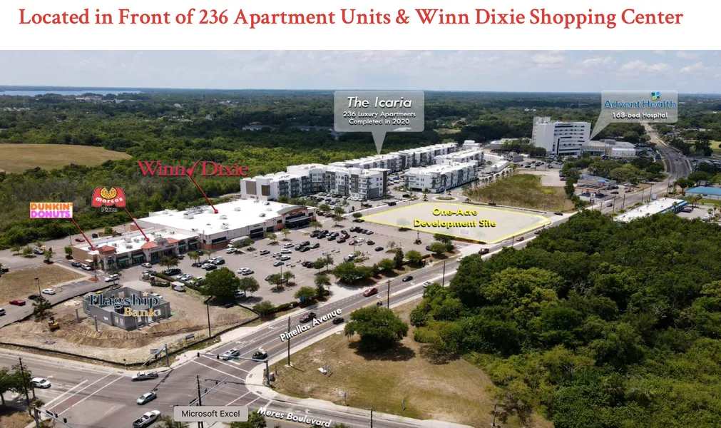 PROPERTY DESCRIPTION - One-acre pad ready site in Tarpon Springs Florida. The property sits in front of a Winn Dixie anchored shopping center, the brand new 236-unit Icaria apartment complex, and just north of the 168-bed AdventHealth North Pinellas Hospital. This site is ideal for retail as well as professional and medical office users.