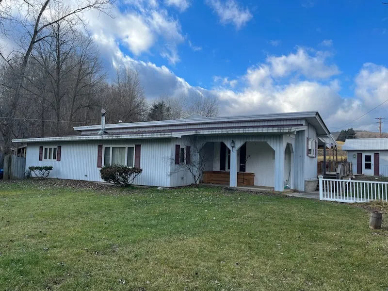 This is no ordinary manufactured home. 3 additions have made this into a very functional and beautiful residence that can easily house multiple people. With 3 large bedrooms and a massive covered outdoor deck/pavilion there is more space than the average manufactured home to house parties and family events and with this property being located between Hornell and Alfred you have multiple options to shop and are less than 10 minutes away from Alfred State College and Alfred University. This property has a front and back lawn with another covered deck for storage which the homeowner currently uses for firewood for the LOPI woodstove in the living room. There is a ductless air and heat unit in the sunroom which makes the space cozy to visit or just hang out and watch tv and there are also 2 forced air heating systems to heat up separate parts of the house. There is plenty of off road parking...