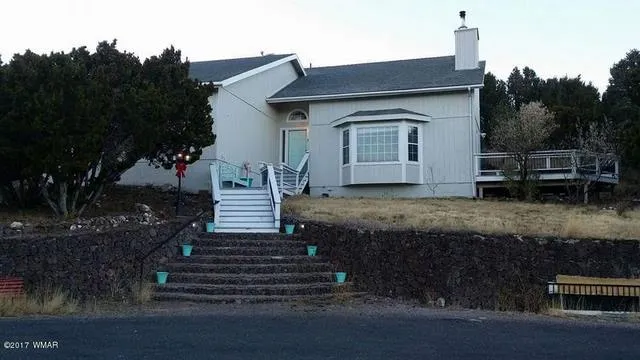 Open views of the mountains with peace and quiet that comes with living on the edge of town. This home is nicely situated on a hillside with unobstructed views of the surrounding mountains. Views can be enjoyed through the large living room window or while sitting on the open deck. Home features 3 bedrooms with a possible 4th bedroom or office/den, large living room with beautiful Malapai Stone that surrounds the wood stove, two bedrooms upstairs with balcony over the living room, master bathroom includes a double vanity and large tub, enjoy the natural light in the master bedroom. This home has lots to offer and is a must see. Call for an appointment today.