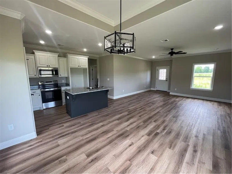 This is the newest home to our subdivision. The Orchard B design 3bed 2bath will be ready mid-June for its new owner. As with all Rhodes Property new constructs, this home come complete with granite countertops, premium vinyl flooring, and crown molding throughout. Grab this one now while you still have time for color choices and other options that will make it YOURS!