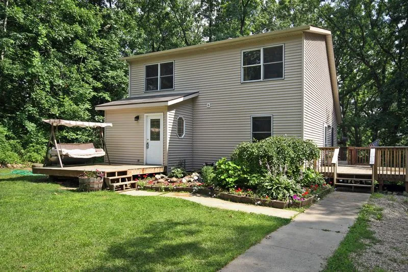 Lake Access -This 1 acre lot has deeded access to Long Lake Cloverdale. Attractive Cape Cod home with nearly 1700 finished sq. ft. This home features locally milled Hickory Kitchen cabinets, All Worme Wood Trim & Maple Floors throughout. The Main floor is sunny & bright w/vaulted ceiling & skylights. The floorplan on the main floor includes a mud room, kitchen w/dining area, family room w/sliders to the spacious deck & a bedroom, which could be the master, plus full bath. Upstairs are 2 additional bedrooms both with Maple Floors & another full bath. In addition the 3 season room is partially finished just waiting for the final touches. The walkout basement has 2 sets of sliders to the patio. There is plenty of room to create additional living space if needed plus it's already plumbed for a bath. With this home you have the option to heat w/propane or use the stand alone wood burner. This...