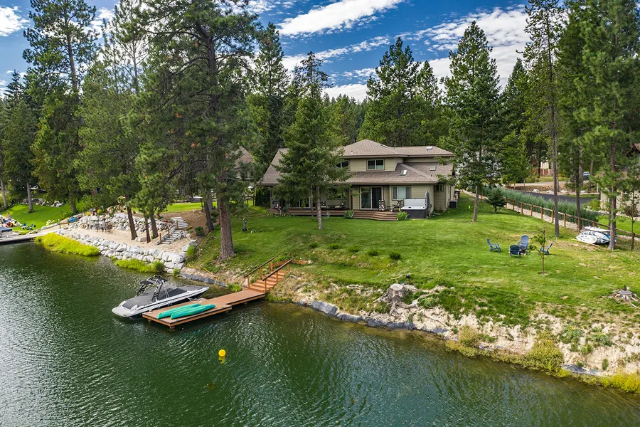 Wrap yourself in luxury in this absolutely stunning waterfront home, just two miles to Sandpoint. Masterfully built by Pacific Construction in 2016, this single-owner home boasts 3400 square feet with an open floor plan, beam ceilings, rock fireplaces and unique and distinctive finishes throughout. The kitchen is a chefs dream large island, granite counters, and top-of-the-line appliances. The main floor features a large en-suite bedroom overlooking the water with its own fireplace, dressing room and spa-like bath. Two other bedrooms, a library/office and an artists studio over the 3-car garage make this home perfect for year-round or vacation living. Efficient systems serve the home, including gas forced-air and central air conditioning. The garage is plumbed for a gas heater and the electric panel includes generator hookup. Inside spaces transition seamlessly to outdoor deck and entertaining area overlooking the dock. This is prime waterfront, gentle lawn to waters edge, on one-acre estate lot with 149 feet of frontage that continues to the thread of Fry Creek, safe harbor for watercraft, kayaks and paddle boards. Come discover your own Idaho heaven here at 263 Buck Run.