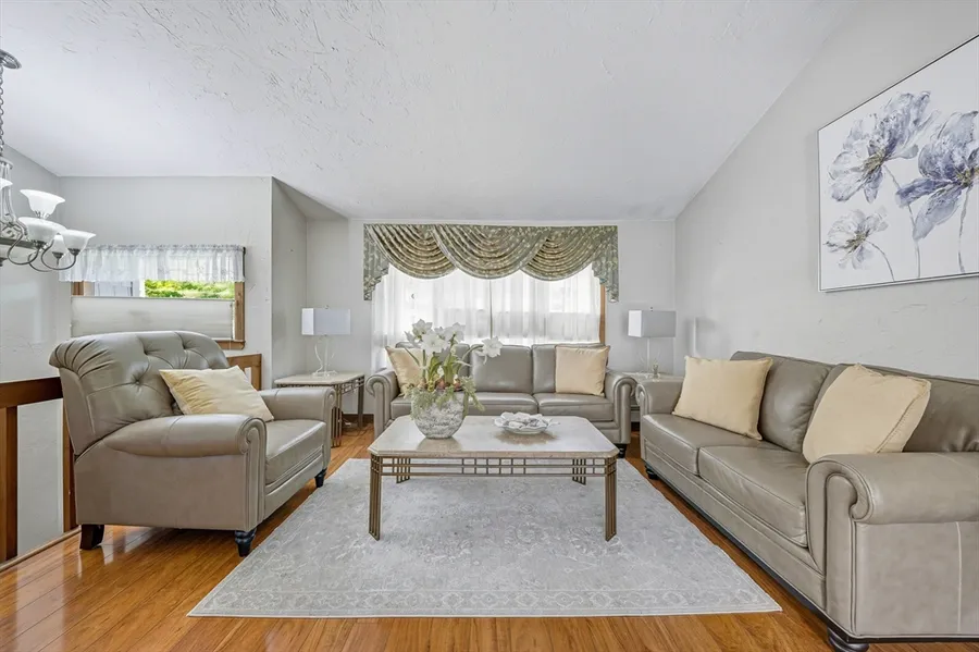 Don't miss this opportunity to own a meticulously cared-for home, a Raised Ranch, offering 3 bedrooms plus a den and 2 full baths. The sun-drenched living room with cathedral ceiling creates a bright, open feel. The kitchen features granite countertops, a stylish tile backsplash, and modern appliances, seamlessly flowing into the dining room with direct access to the deck-perfect for enjoying views of the expansive 1-acre backyard. The main bathroom has been recently renovated, adding a touch of spa-like luxury. The finished lower level provides incredible versatility, with a cozy family room complete with built-in bookshelves and a wood stove, a full bathroom with jacuzzi tub, plus a bonus room ideal for a home office, gym, or potential 4th bedroom. Additional highlights include a gas heating system updated in 2022, central A/C, one-car garage, and an oversized backyard-ideal for entert...
