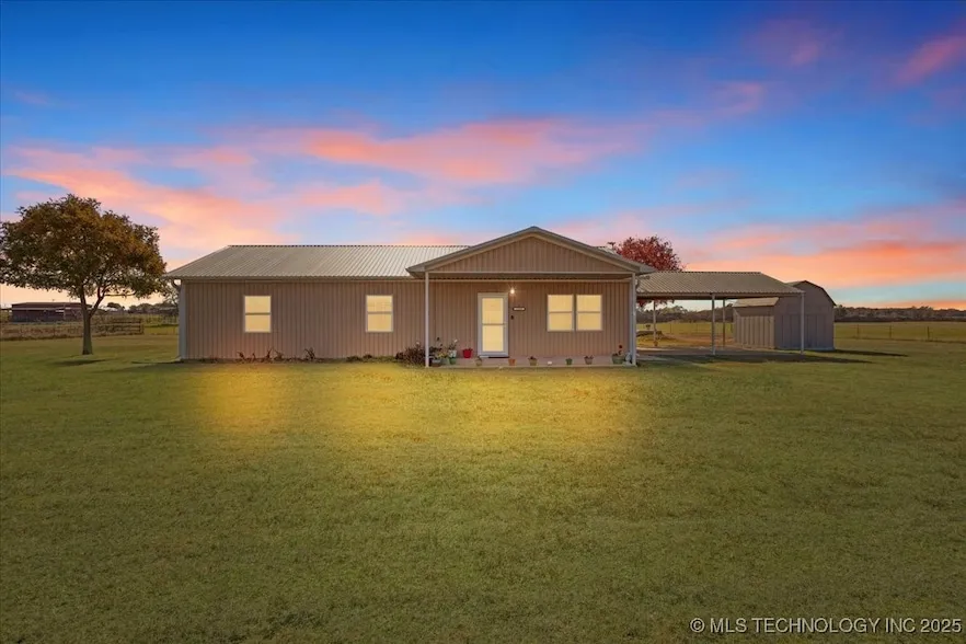 Situated conveniently close to Highway 75 and just a stone's throw from the Texas border, 2149 Sterret Rd in Calera, Oklahoma, offers an ideal location for those seeking both accessibility and tranquility. This charming property is perfect for anyone looking to enjoy the best of both worlds peaceful rural living with the convenience of nearby urban amenities. The home sits on a generous lot with plenty of room to store your RV and boat, start a garden, and enjoy many outdoor activities. The covered back porch extends the full length of the home, and offers ample space for outdoor furniture, dining sets, and cozy lounging areas. This patio is perfect for savoring the serene surroundings and extending your living space into the outdoors. Inside, the property boasts a welcoming and functional layout, with a cozy living area that seamlessly connects to a modern kitchen equipped with all the essentials. The proximity to Highway 75 makes commuting a breeze, whether you're heading north to explore the vibrant city of Durant or south into Texas for a quick getaway. Nearby attractions include the Choctaw Casino & Resort, offering entertainment and dining options, and the scenic Lake Texoma, perfect for boating, fishing, and hiking. The home is equipped with a 3-year-old HVAC unit and a 2-year-old hot water heater, ensuring comfort and efficiency year-round. Additionally, the property features a storm shelter, providing safety and security during Oklahoma's stormy seasons. Additionally, a convenient storage shed provides extra space for tools, equipment, or seasonal items. This property is not just a home; it's a gateway to a lifestyle that balances relaxation with adventure. Whether you're a first-time homebuyer, looking for a family retreat, or seeking a strategic investment, this home is a prime opportunity in a sought-after location. Don't miss your chance to own this amazing property.
