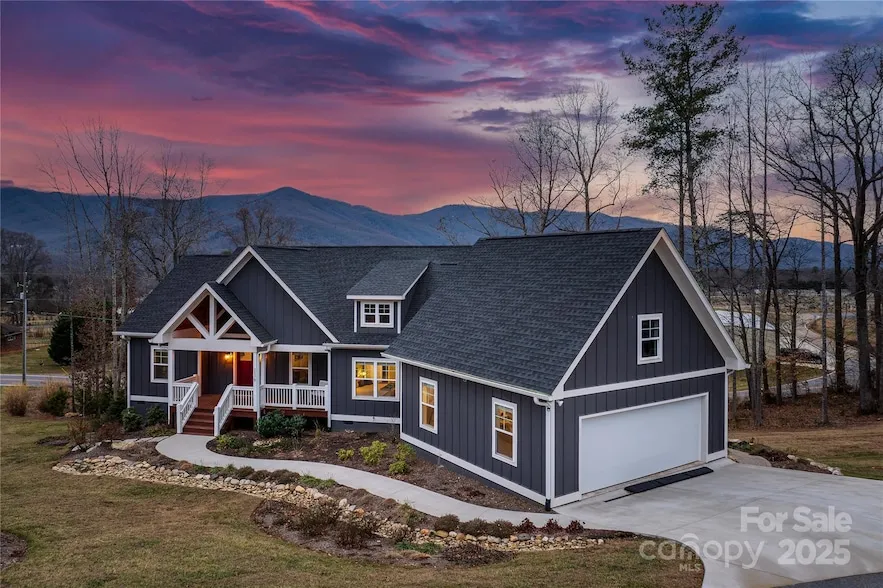 Discover this beautiful modern home built in 2021, offering year-round, long-range mountain views, minutes from historic downtown Black Mountain. Meticulously maintained, it blends both luxury and comfort with easy access to Asheville & Pisgah National Forest. The spacious open floor plan, 3 large bedrooms, luxurious kitchen, stone fireplace, and extensive outdoor living spaces, invites you and guests to soak in the best of Western NC. The roomy front-porch is perfect for morning coffee or take in the mountains from the expansive covered back-deck. Extensive landscaping with stone retaining walls and gardens- all with smart irrigation, create a peaceful private oasis, a perfect setting to finish your day in the hot tub. Enhanced with Smart Home capabilities, this home is a successful 5-star rated, short term vacation rental, and with furnishings negotiable, an ideal investment opportunity. Tons of storage in tall crawl space or finish for additional living space. See Virtual Tour!