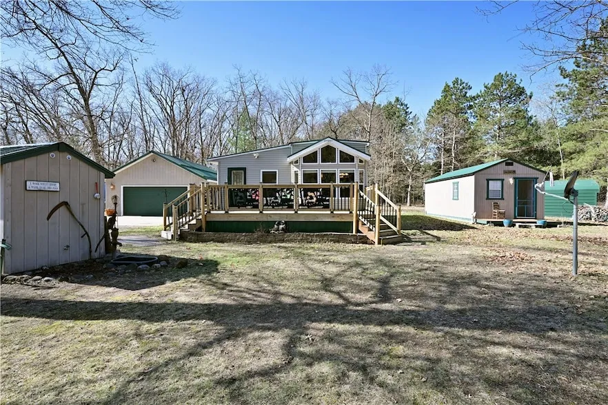 Unwind in your 4-season getaway where rustic charm meets modern convenience. This custom park model cabin beckons with front & rear decks, perfect for stargazing or morning coffee. Whip up culinary delights in the spacious kitchen, boasting an island that's just begging for pancake stacks and conversation. An addition gifts you a cozy living room and an extra bedroom, while the original design surprises with a bedroom and a loft above offering not one, but two sleeping areas. The garage 32 x 24 not only shelters your vehicles but also comes with a finished enclosed bathroom and laundry area. Bunkhouse or She/He Shed waiting for your creative exploits. For those adrenaline-fueled adventures, store your boats or other recreational toys under the generous carport. All this: set against a backdrop of lakes with beaches, Utv trails, and a lively clubhouse, This property promises endless esc...