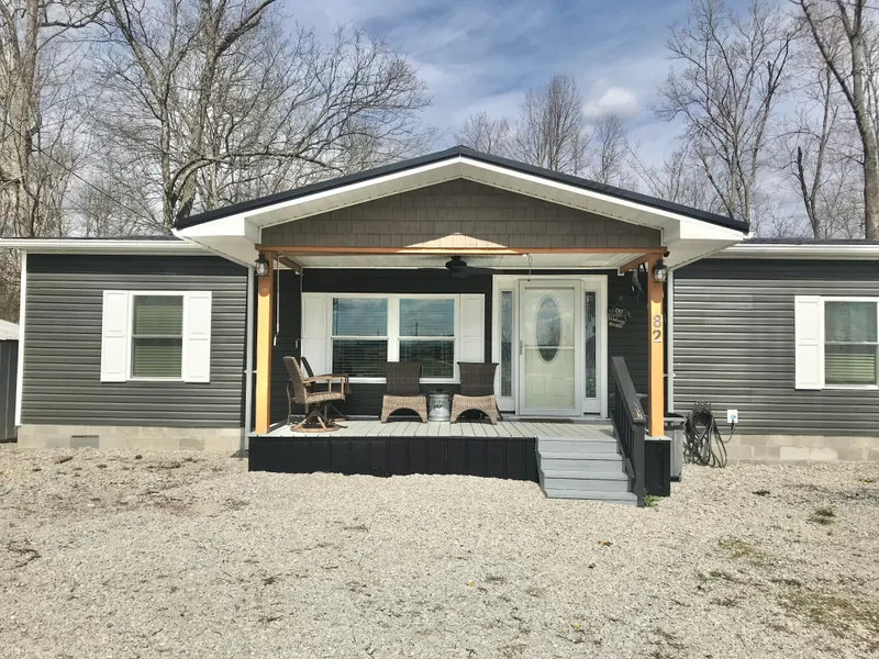 Step into this beautifully remodeled 2-bedroom, 2-bathroom manufactured home situated on a picturesque 1-acre surveyed lot. Boasting drywall walls, luxury vinyl flooring, and a block perimeter foundation, this home offers durability and style. The attached garage and fenced back yard provide convenience and privacy, while the modern farmhouse interior features a farmhouse sink, center island coffee bar, and sleek black stainless appliances. The open concept living room, dining room, and kitchen create a seamless flow, perfect for entertaining. Retreat to the master bedroom with an en-suite bath featuring a step-in tiled shower and walk-in closet. The guest bedroom on the opposite end of the home offers privacy, with a hall bath featuring a tiled shower. Stay comfortable year-round with central heat and air, supplemented by a gas wall heater for added warmth. This home is a perfect blend ...