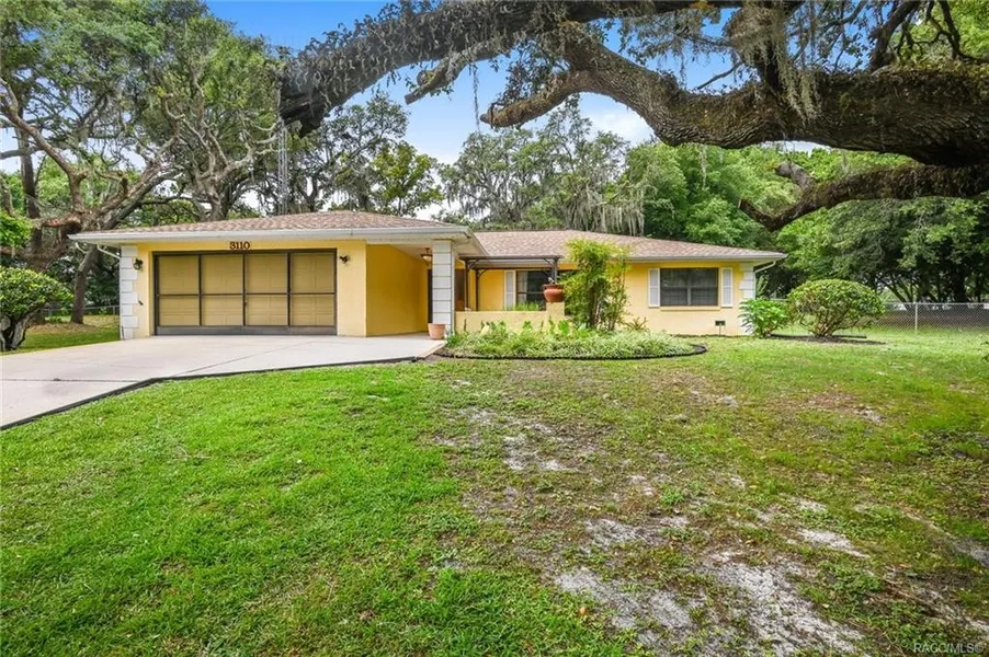 Beautifully maintained 3 BR, 2 Bath split plan home, DB garage, inside laundry and awesome Florida Room w/wet sink & cabinets & vinyl windows . Huge kitchen w/nice appliances 7 lots of cabinets. Great room w/Bamboo Engineered Wood Floors, Lots of cabinets & closets throughout home . Upscaled subdivision. I think Deed Restrictions have expired, but checking ? Home is on 1/2 acre lot and adjoining lot is included in price . Totals 1 acre, but on 2 deeds ! Lots of fencing and mature trees and plants. Septic pumped 3/2022 & was supposed to be okay for 5 years. Termite contract/ security system. Recently groomed and cleaned for better viewing ! 3 portable metal tiki type structures on pavers for expanded entertainment .