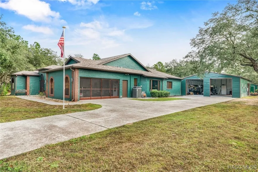 Welcome to this beautifully maintained 3-bedroom, 2-bath home situated on a full acre in the highly sought-after Pine Ridge equestrian community. This property offers an exceptional blend of comfort, updates, and lifestyle amenities. Step inside to discover numerous upgrades, including a new family room picture window(2024), new French doors in the kitchen dinette (2024), new gutters and roof installed by Cedar Cove Roofing (April 2024), brand-new exterior paint (2025), and a remodeled kitchen and bathrooms. The home features a well-equipped utility room with a sink and an additional half bath for added convenience. Appliance updates include a Whirlpool dishwasher (2023), Whirlpool microwave (2024), Whirlpool dryer (2023), Maytag washer (2022), and a Samsung 5-door refrigerator (2022). A RainBird automatic sprinkler system helps maintain the beautifully kept grounds with ease. Extra storage above garage doors and also in the partially floored attic. Outdoor features elevate this property even further. Enjoy a 24ft round above-ground pool with a 13 x 16ft newly remodeled Redwood Deck, plus a 30' x 40' wind-rated garage (engineered for 180 MPH) with two 10' x 10' commercial overhead doors, jack shaft openers, a separate 250-amp electrical panel, multiple 220 and 120 outlets, LED ceiling lights, and an additional 8' x 10' commercial overhead door. A 12' x 20" shed with complete electrical installation provides excellent storage or workplace, and the fire pit area includes three exterior outlets for lighting and an electric bug zapper. Pine Ridge offers a truly unique lifestyle with miles of equestrian trails, a clubhouse, tennis courts, a dog park, and beautiful natural surroundings. Experience privacy, space, and modern comfort-all within one of Citrus County's premier communities.