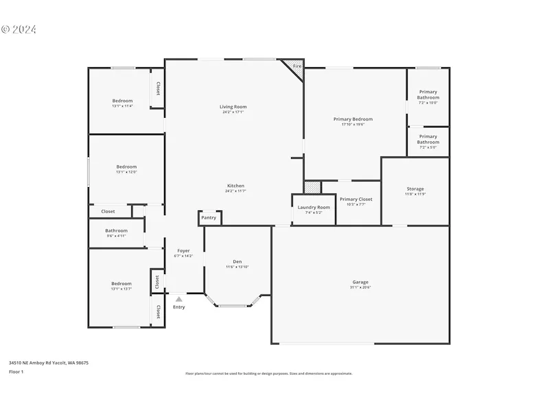 Welcome Home! Built in 2005, this comfortable one-acre property offers a great balance of comfort, convenience, and space. Located on the outskirts of Yacolt Town surrounded by evergreen trees, this home provides a spacious living environment both inside and out. Whether you are an avid boater, an RV enthusiast, or simply need extra parking, this property can easily accommodate all your vehicles and more.The one-level layout has four bedrooms plus a versatile den/office, ideal for those who need extra space for work or hobbies. The open floor plan creates a sense of airiness throughout, especially in the living room where vaulted ceilings add to the expansive feel. You will find no carpet in the home, offering a sleek, easy-to-maintain interior that is perfect for those who prefer hard surfaces or have allergy concerns. The living room also boasts a propane-fueled fireplace, creating a cozy atmosphere for cooler evenings, and built-in surround sound speakers enhance your entertainment experience.The three-car garage includes a partially converted fourth bay, now used as a den or extra room. The covered deck at the back of the home overlooks the rear yard and the surrounding evergreen trees, the play space and fire pit, offering a peaceful spot to unwind.Schedule your own private tour today! Let's Move!