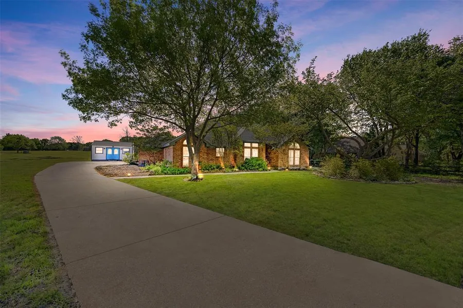 NEW ROOF COMING SOON! Welcome to your dream retreat just minutes from town! This beautifully updated 3-bedroom, 2.5-bathroom home, located on a quiet cul-de-sac, sits on nearly an acre (.94 acres) in the highly sought-after Wylie ISD (A-rated) offering the perfect blend of peaceful country living and convenience. Step inside to discover a spacious split-bedroom layout with two living areas, two dining spaces, and a stunning double-sided brick fireplace that brings warmth and charm to both living rooms. The entire home features durable, stylish porcelain wood-look tile flooring, complemented by fresh, modern paint throughout. The updated kitchen boasts tier 2 upgraded granite countertops, adding both beauty and value to the heart of the home. Additional highlights include custom built-in features for added functionality and a lifetime warranty almost all windows, offering peace of mind fo...