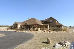 Remarkable find! Stunning four bedroom with study in the Hill Country. Home offers beautiful stained concrete flooring, granite counters, covered patio, and hobby room. Open floor plan. Master bedroom and two bedrooms down with bonus room and guest suite up. Large fenced yard. Peace and serenity with a flair of country living. Neighborhood offers private river access and River Crossing membership opportunity.