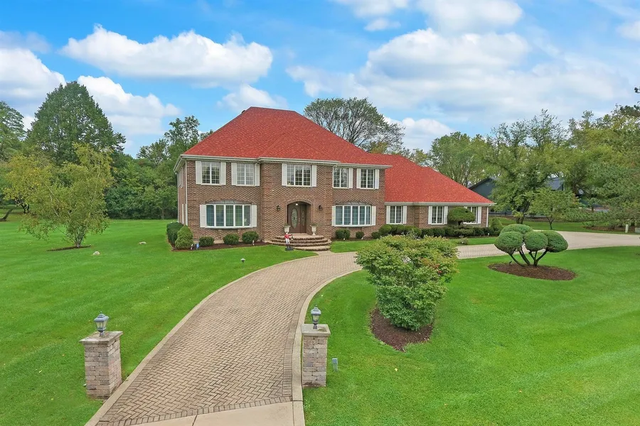 Welcome to one of the finest homes in desirable Barrington Homestead Estates of South Barrington. Situated in quiet cul-de-sac location, this well maintained custom built 2-story showcases a beautiful brick paver circular driveway that promptly extends a warm welcome. Inviting 2-story Foyer greets you into the open concept floor plan with stunning staircase flanked by a formal Living Room and Dining Room. Airy, light filled kitchen offers plenty of cabinetry, all stainless steel appliances, granite countertops, island in the center with seating, kitchen desk, pantry and spacious Breakfast Room with sliding glass door to a large private yard with brick paver patio to provide endless enjoyment for family and friends. Adjoining Family Room is warmed by a fireplace with brick surround. Two sets of glass doors lead onto private patio to enjoy pleasant views around you. Office/optional Bedroom...