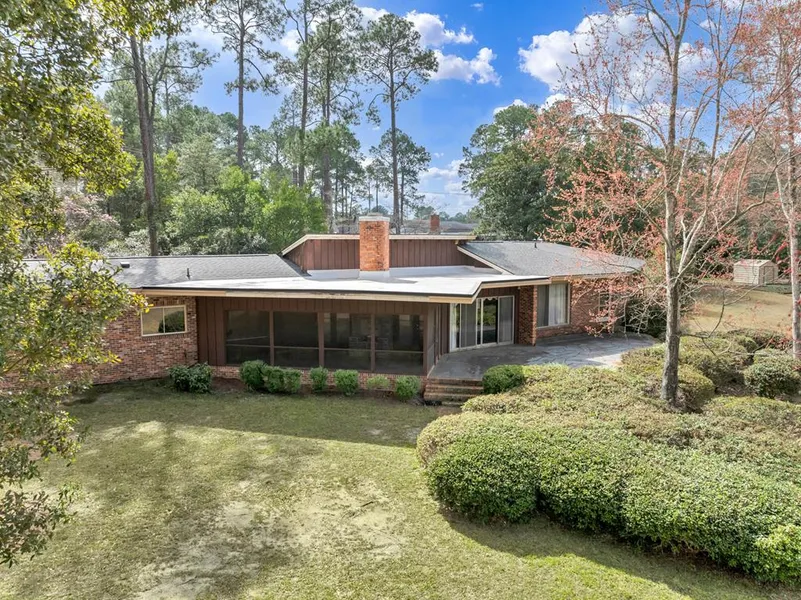 AMAZING Mid-century modern time capsule ready for you to update to your custom style preferences! This great house has a BRAND NEW roof, 2607 square feet, 4 bedrooms, and 3 full bathrooms on one acre of land. It has a beautiful brick exterior that continues inside with exposed brick on both interior ends of the house. Step into the sunken living room with soaring ceilings and large slate fireplace. The kitchen has a sliding pass-through window complete with a marble tabletop so you can serve your guests appetizers and drinks on the screened-in back porch. Amazing original elements throughout. Nice amount of space and bedrooms, gorgeous back patio, large yard, and huge driveway with access from both Pinecrest Drive and the newly paved alleyway. Needs some work, but is truly an amazing home that deserves be lovingly restored!