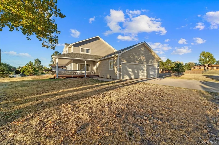 Dreaming of a semi-rural lifestyle in the heart of the city? Your homestead awaits in The Falcon Estates. This coveted neighborhood blends urban convenience with country living, fostering a shared appreciation for space and its rustic charm. Perfect for those craving city amenities with a rural touch, this rare 4-bedroom, 3-bathroom home with a 3-car garage offers access to top-notch schools. Nestled on a one-acre corner lot, this property provides ample space and privacy. A welcoming exterior greets you with a spacious front porch boasting breathtaking mountain views. Inside, you'll find an open-concept main level. An inviting living room with mountain views and new carpet flows seamlessly into the kitchen and formal dining room. The kitchen features granite countertops, a stone-accented breakfast bar, newly refaced white cabinets, stainless steel appliances, and updated lighting. The main level also includes a sitting room with mountain views, access to the three-car garage, a powder room and a cozy office with french doors. Sliding glass doors open to a backyard complete with a relaxing patio, children's play set, and offers plenty of gardening space or room to play on the one acre lot. Upstairs, an expansive master suite offers a true retreat with its en-suite bathroom. Three additional bedrooms and a full bathroom complete the upper level. This home's appeal extends beyond its walls: situated in the highly sought-after D-20 school district, it's minutes from dining and shopping at Falcon's Landing and other establishments on Academy Boulevard. Nature lovers will appreciate the short drive to stunning outdoor spaces like Ute Valley Park and Blodgett Peak. Recent upgrades include fresh interior and exterior paint, new carpet, solar panels, granite countertops in the kitchen, and new light fixtures on the main level. Don't let this opportunity slip away schedule your viewing today!