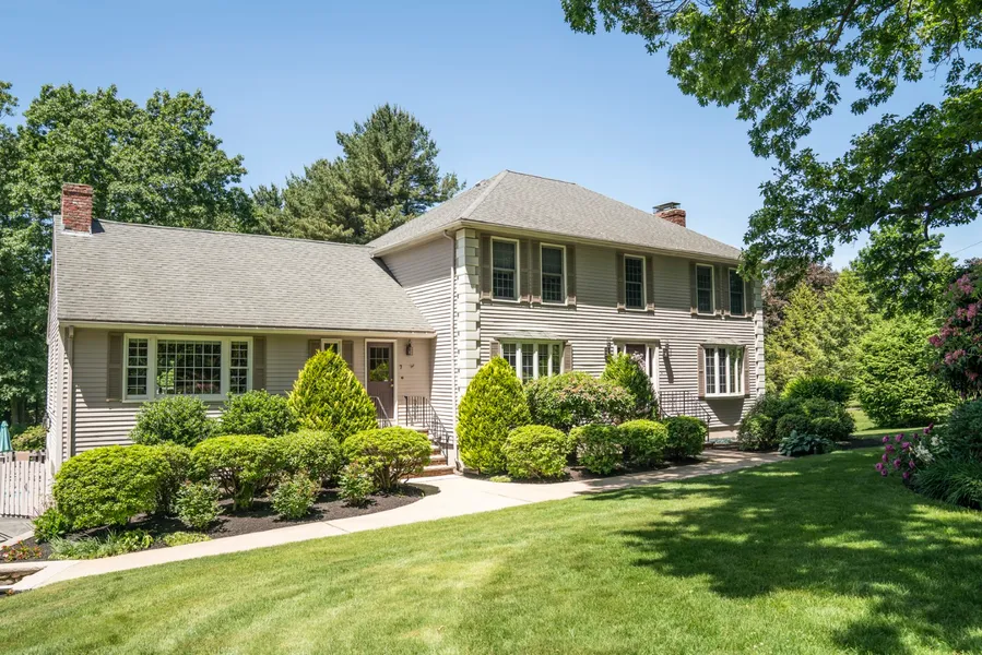 On the market for the first time, this is a meticulously maintained Colonial on a level lot with beautiful landscaping and mature plantings. The family room has cathedral ceilings, hardwood floors and a brick fireplace. There are french doors that lead to a back deck overlooking the pool and beautiful backyard. The kitchen has newer appliances, granite countertops and a large eat-in area. The main floor also has a dining room, large living room with marble fireplace and an office. Laundry is located on the main floor as are two half baths. Upstairs are 4 bedrooms. The large main bedroom has an updated en suite bathroom. A large portion of the basement is finished with a walk out to the backyard. The pool area will be a great place to relax and entertain. A must see home!