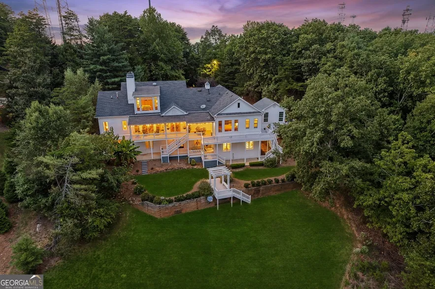Want to feel like you're vacationing all the time? Experience the luxury of mountain living in this newly renovated, custom designed Estate home located atop Sawnee Mountain in Forsyth County!Just a 30-minute drive to the Atlanta perimeter and 3 minutes to Cumming City Center! Soon-to-be-gated and no HOA! Nestled at an elevation of 3,850 feet on 1 acre of land. This home offers amazing views towards Atlanta and Stone Mountain. Expansive observation decks overlook the skyline with amazing views from each Bedroom. Everything has been recently renovated and so many upgrades throughout with meticulous attention to details. The main level has a bright kitchen with a breakfast area overlooking the Family Room with Fireplace. The Kitchen features a new gas cooktop, new microwave/oven wall unit &New dishwasher along with pull out drawers, you'll never go back. The Master Suite & Retreat on Main floor is perfect with new shower, new free-standing tub & quartz countertop +enlarged Master Walk-in closet. This level also has two ensuite guest rooms with updated bathrooms. The Guest Suite upstairs is ideal for company so much so they may not want to leave. Partially finished Terrace level could easily be an In-Law or Teen Suite with tons of storage in the unfinished space. So many possibilities for expanding the finished space here. You'll love the large laundry room & mud room coming in from the garage and the new epoxy floor covering the garage floors. New Roof, AC unit & Furnace replaced in 2022. New driveway too! New detached garage is perfect for storing your tools, motorcycles and more! Don't miss this once-in-a-lifetime opportunity to own a truly unique home atop Sawnee Mountain.